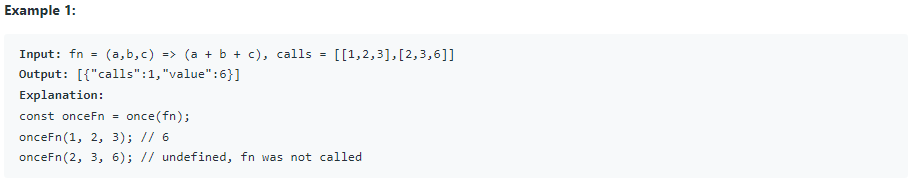 * onceFn(2,3,6); // returns undefined without calling fn