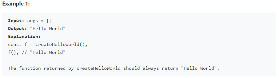 createHelloworld는 함수를 반환해야 하고, 반환된 함수를 호출했을 때 "Hello World"라는 문자열이 리턴되면 된다.